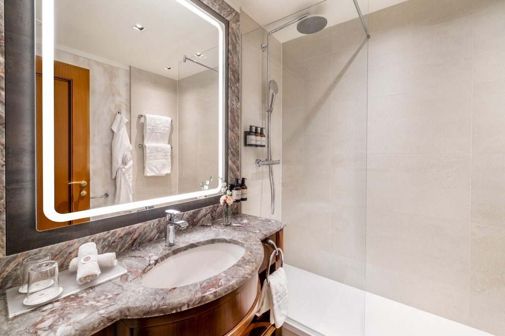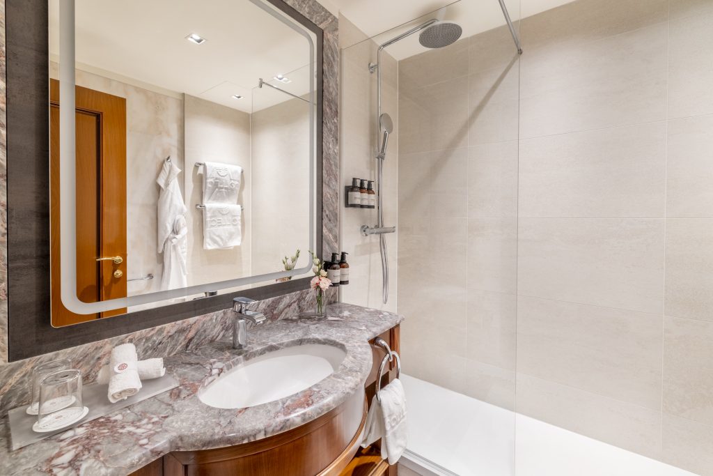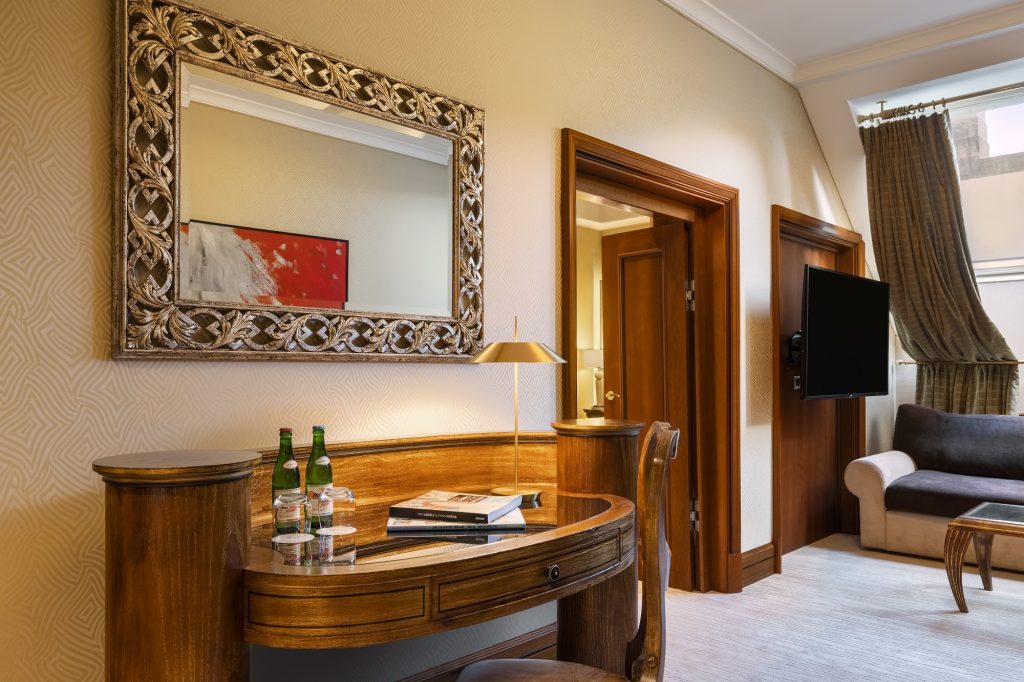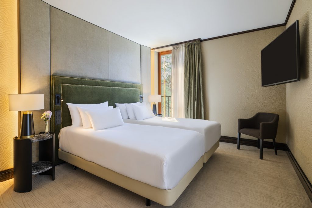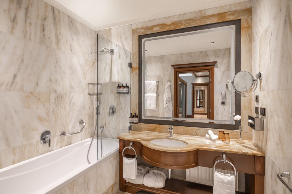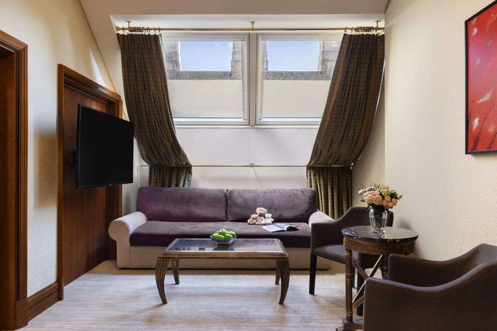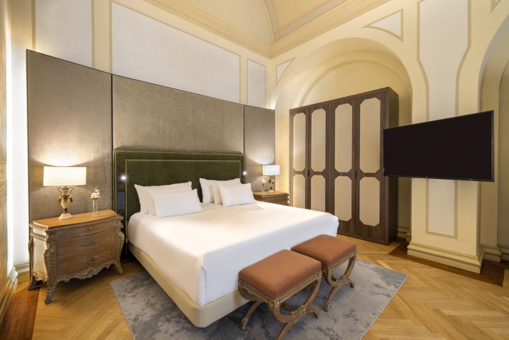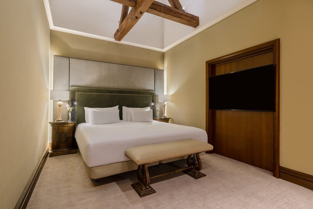 Hosté si mohou vybrat mezi ubytováním v moderně zařízených pokojích typu Superior nebo Premium, nebo ubytováním v historickém křídle budovy, kde z pokojů stále dýchá majestátní atmosféra neorenesanční architektury. Luxusní prezidentské apartmá poskytne skvělé útočiště při romantických dovolených, výročích nebo líbánkách. Dopřejte si uvolňující koupel v mramorové koupelně a vyspěte se do růžova díky těm nejpohodlnějším matracím a bohatému výběru polštářů.